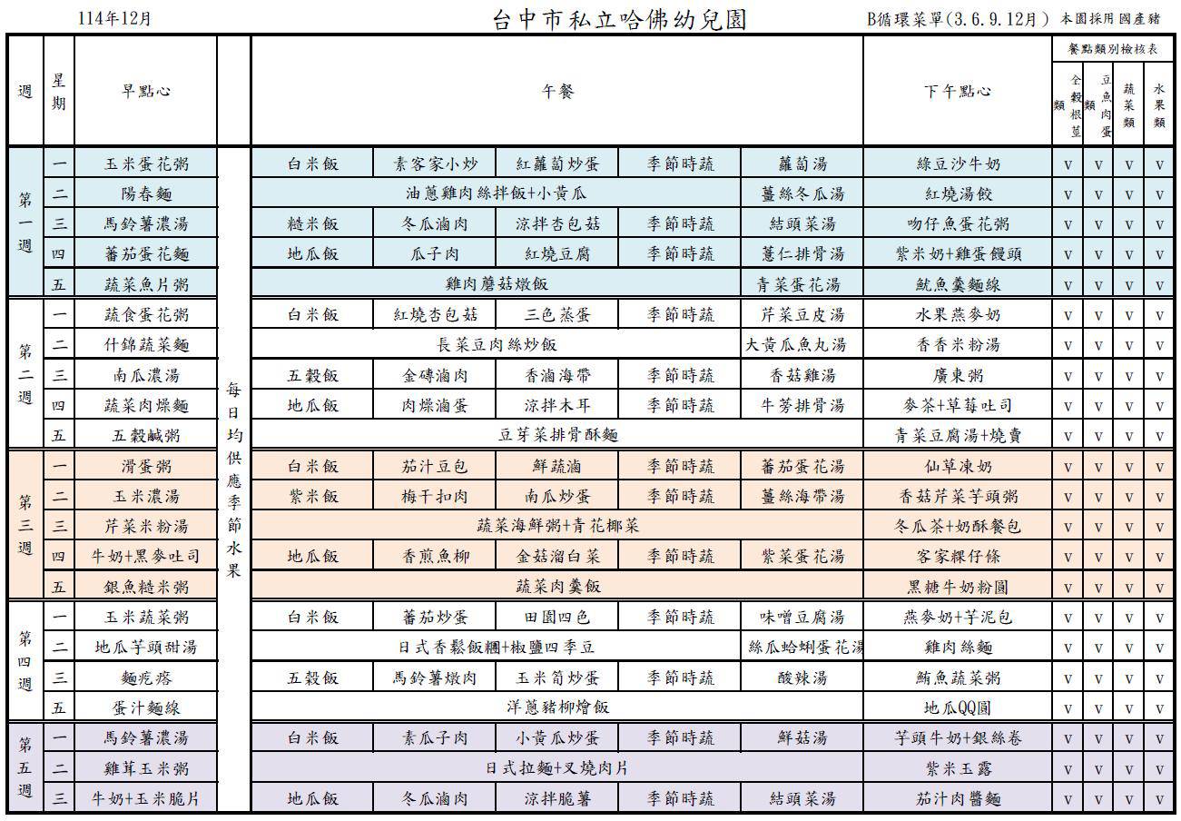 12月餐點表