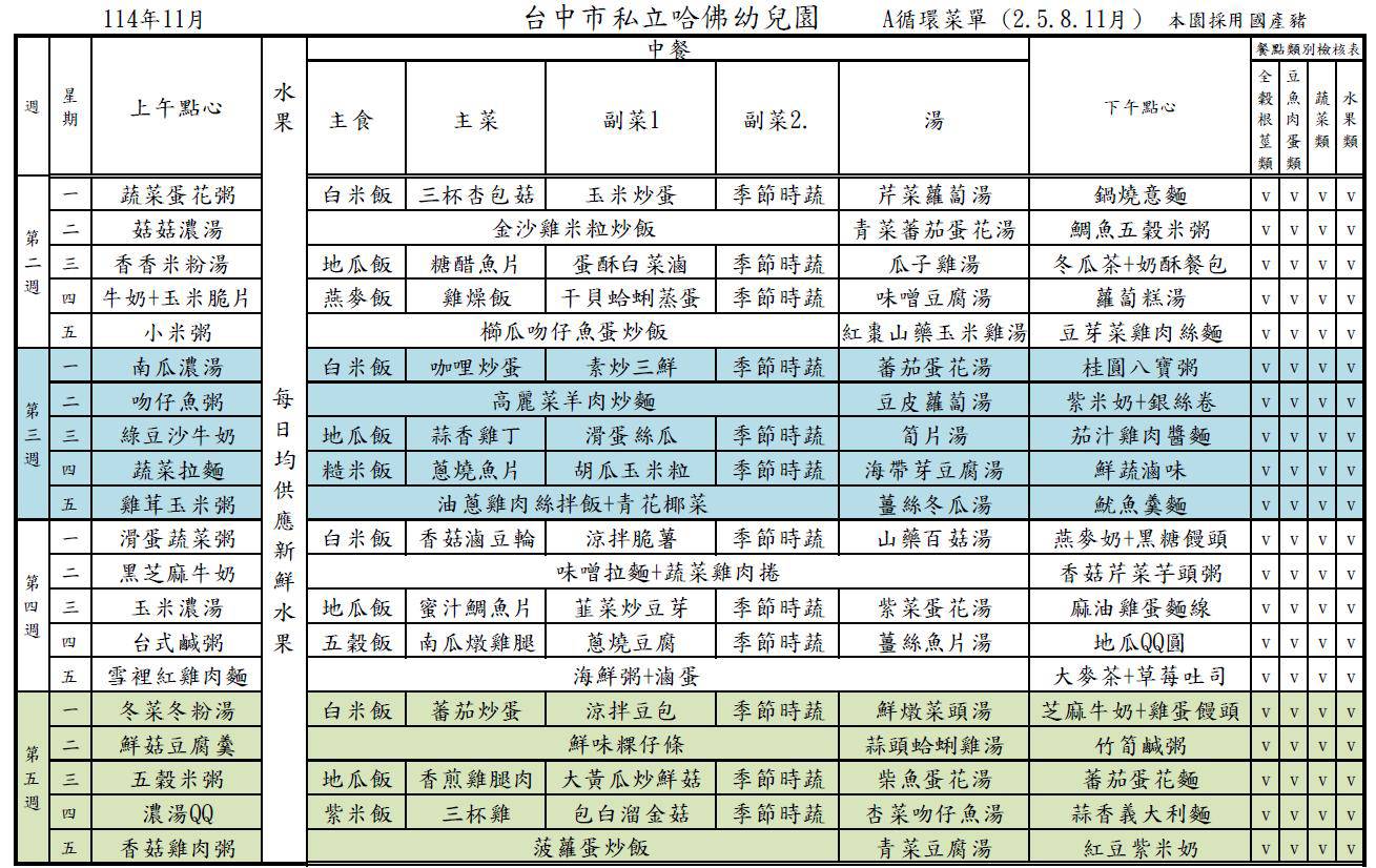 11月餐點表