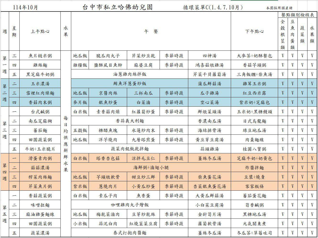 10月餐點表