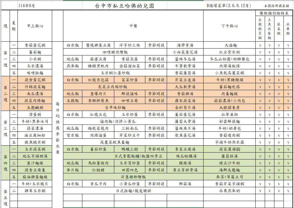 9月餐點表